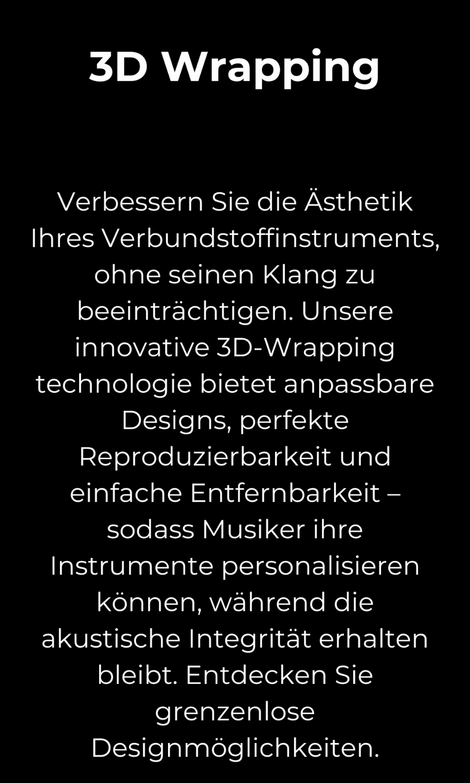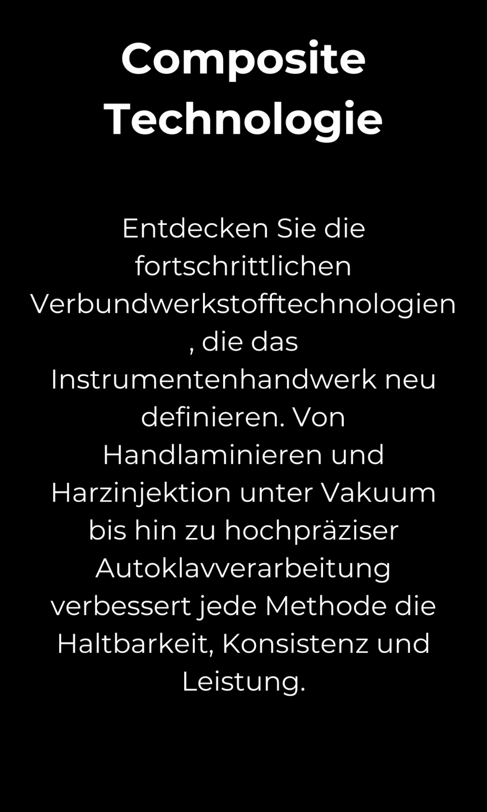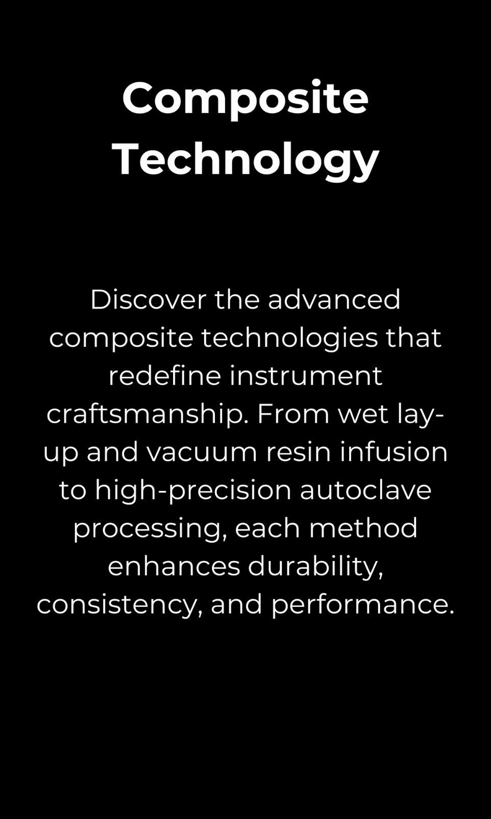 Unter Verwendung modernster Verbundstofftechnologien, leistungsstarker Materialien wie Carbonfaser und Kevlar sowie unserer einzigartigen 3D-Wrapping-Technik fertigen wir Instrumente mit kompromissloser Klangqualität und unverwechselbarer visueller Identität.