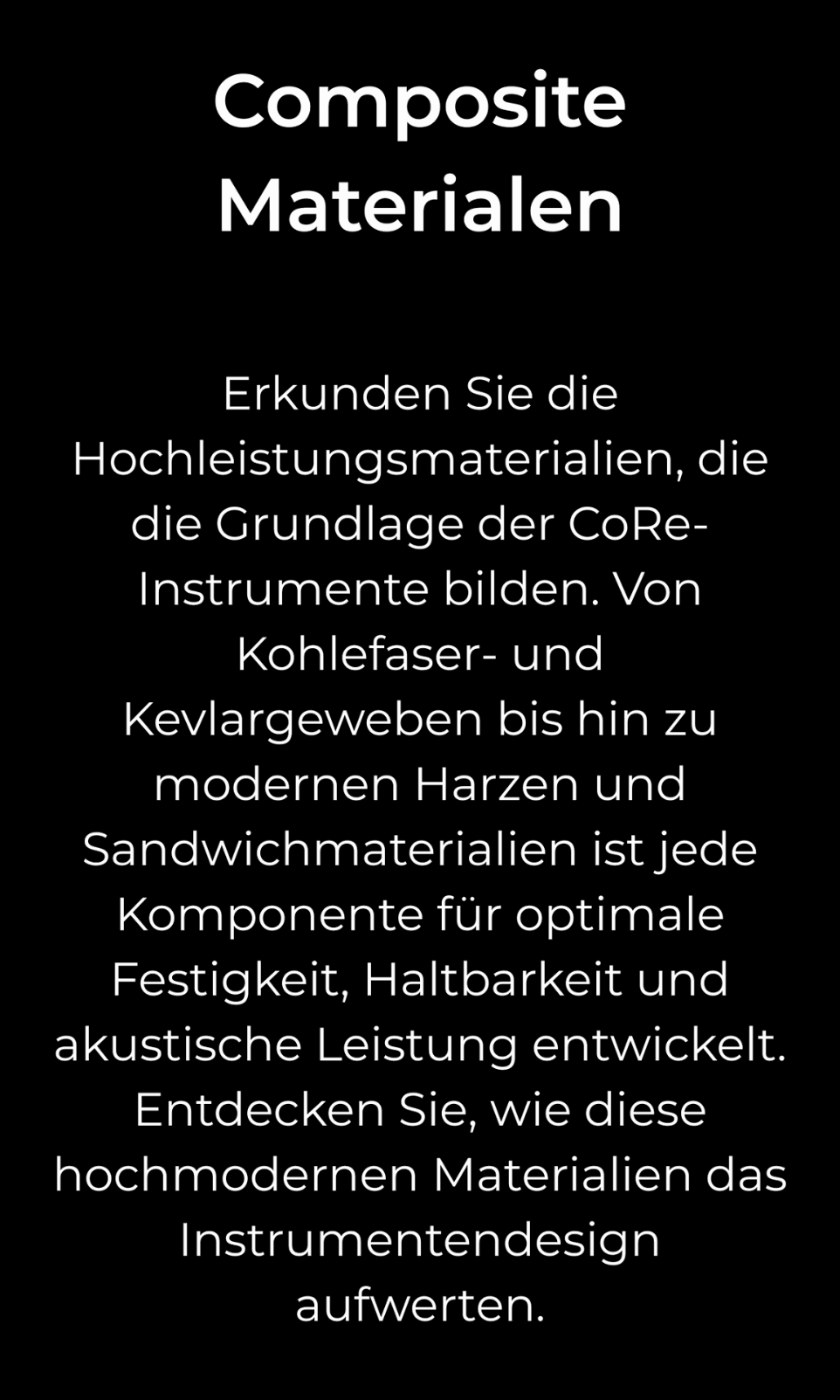 CoRe-Instrumente, gefertigt mit modernster Verbundstofftechnologie, bieten überlegene Haltbarkeit, präzise akustische Konstanz und Erschwinglichkeit – ohne Kompromisse bei der Klangqualität.