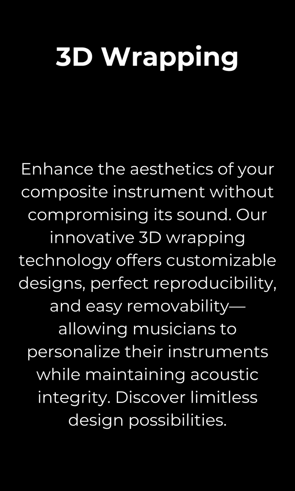 Utilizing cutting-edge composite technologies, performance grade materials like carbon fiber and kevlar, and our signature 3D Wrapping, we craft Instruments with uncompromising sound quality and distinctive visual identity.